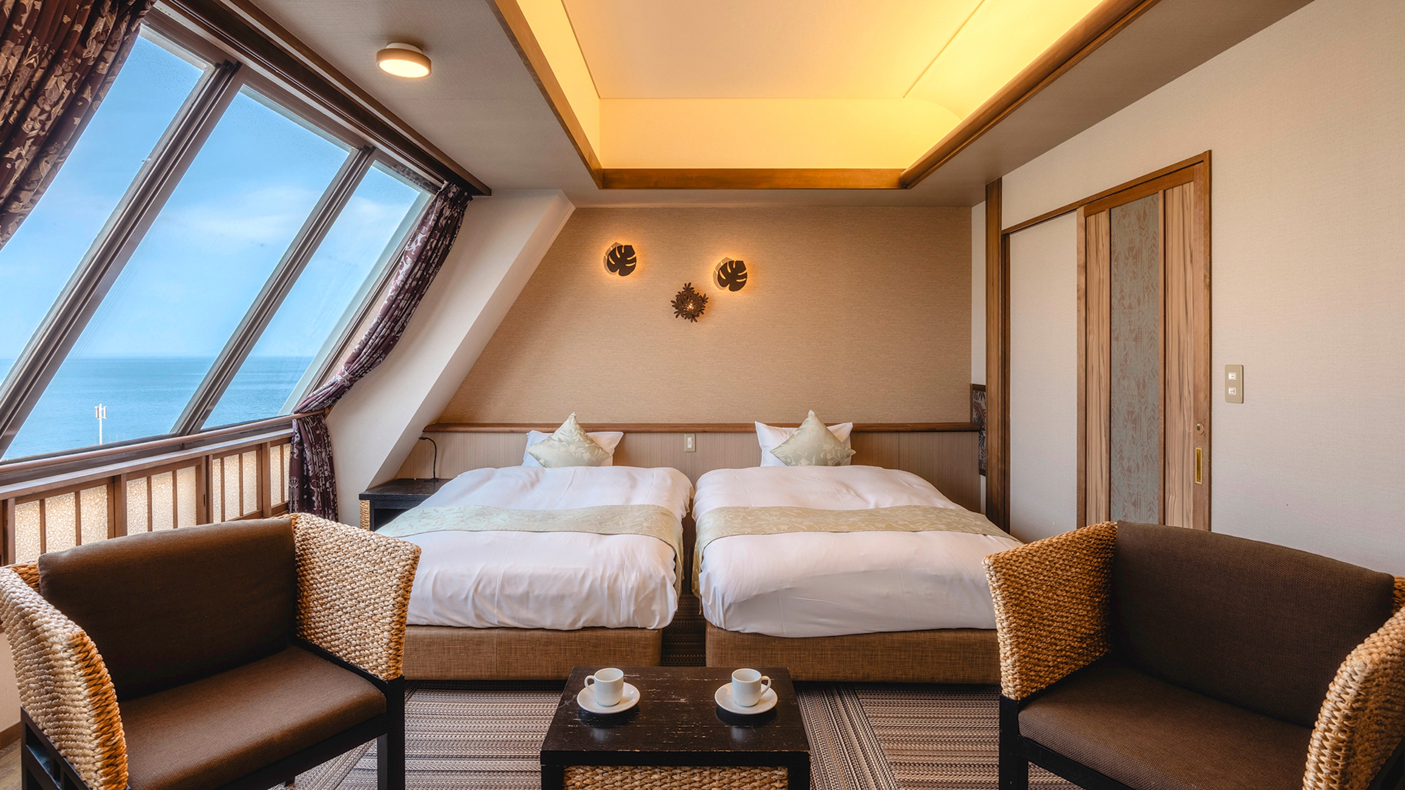 「心湯の宿〜SAZANA〜」では、ほぼすべての客室からオーシャンビューを楽しめます。