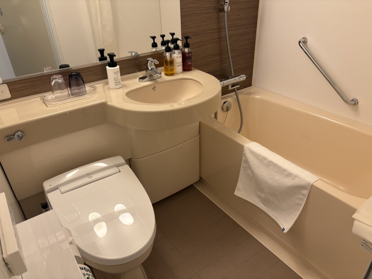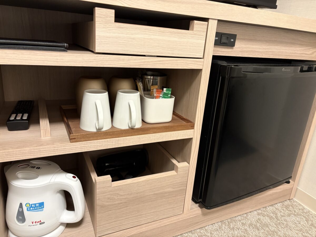 部屋の備品や冷蔵庫、ユニットバスなどは一般的なビジネスホテルレベルで、全体的に清潔感があって綺麗な印象です。