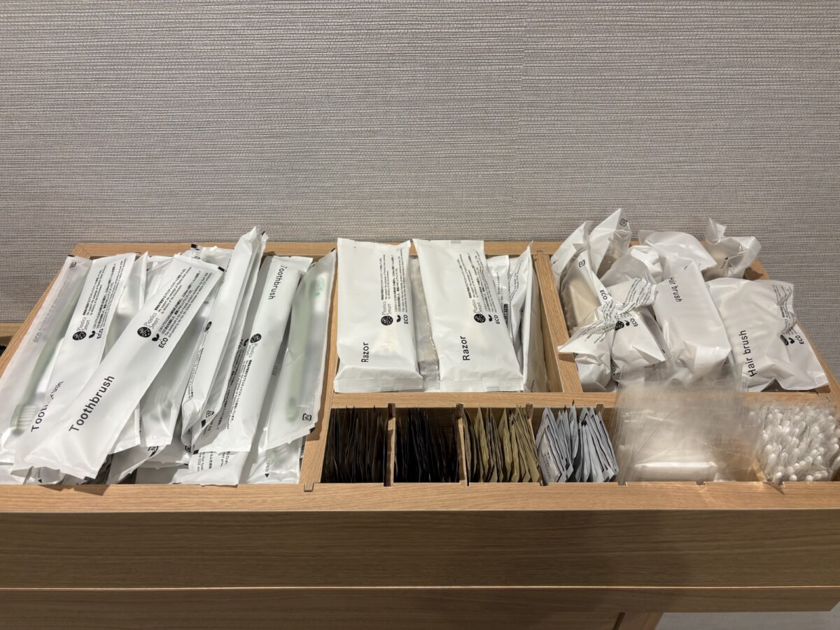 アメニティは各階のエレベーター前にアメニティコーナーがあり、自由に持っていけるスタイル。