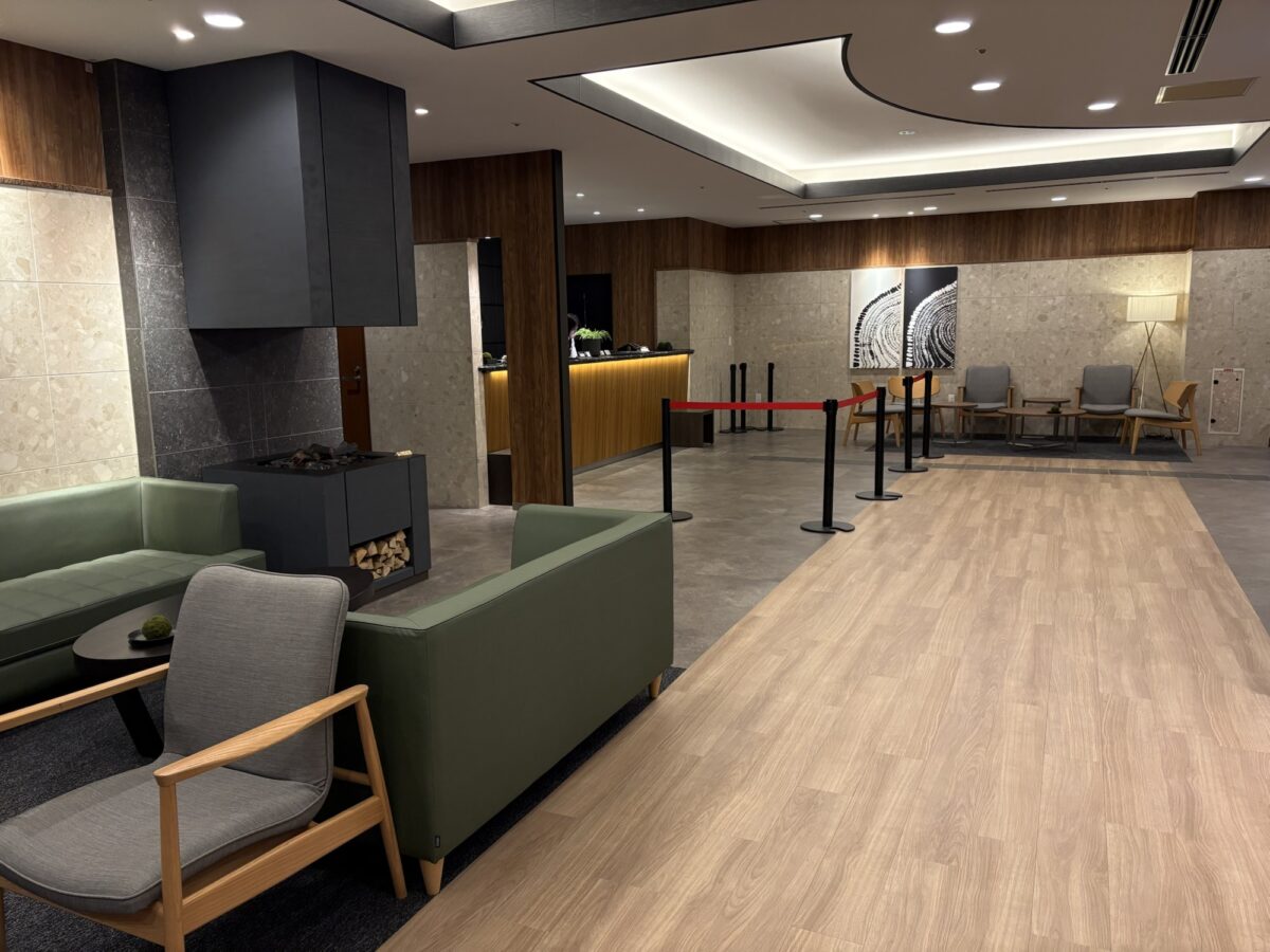 チェックインカウンターとウェルカムドリンクラウンジは、2階ロビーにあります。