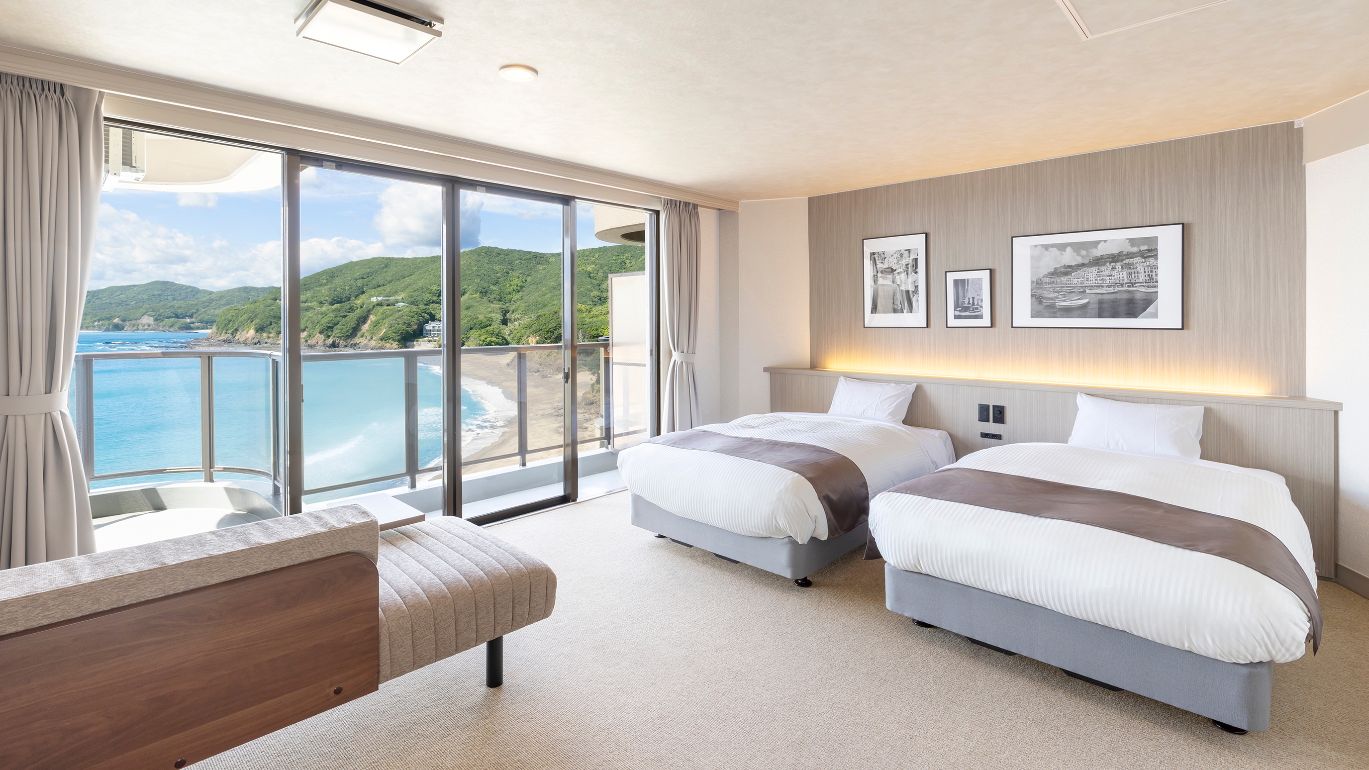 海を一望できるインフィニティ露天風呂が特徴で、大人の贅沢な時間を過ごせるホテル。
