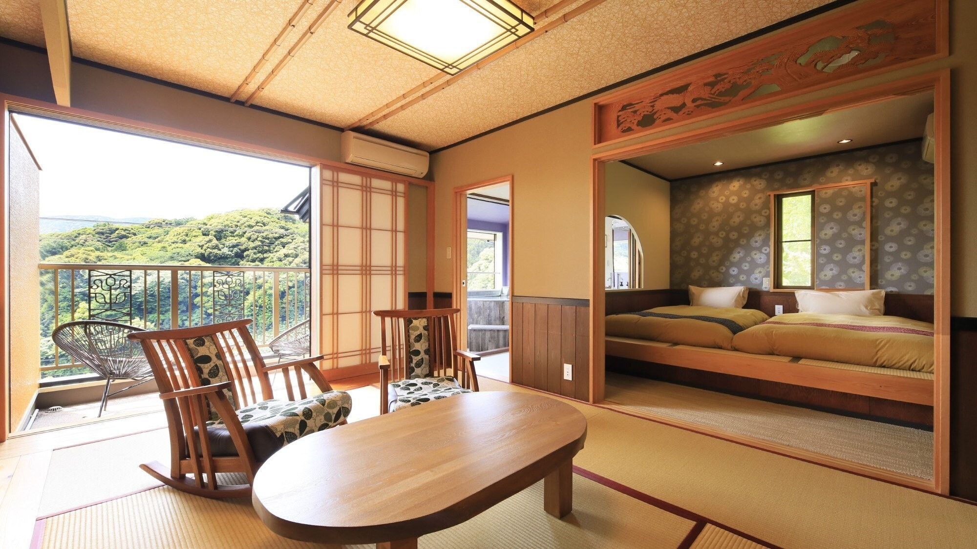 部屋によって展望風呂や露天風呂を堪能できる、プライベート空間重視の温泉宿。