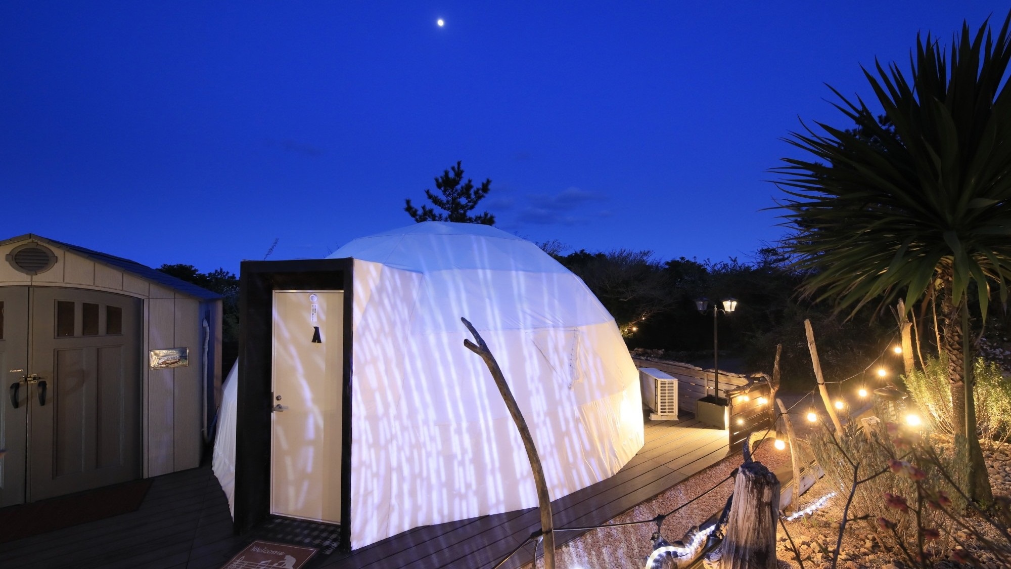 茨城県鉾田市にある「隠れ家 四季の月」は、海まで徒歩1分の場所にあるグランピング施設です。