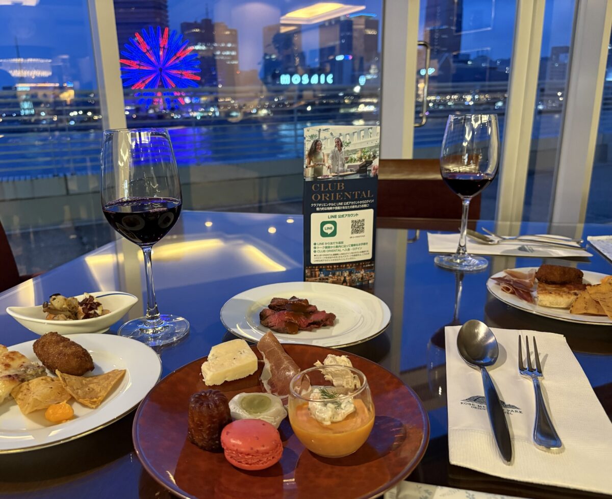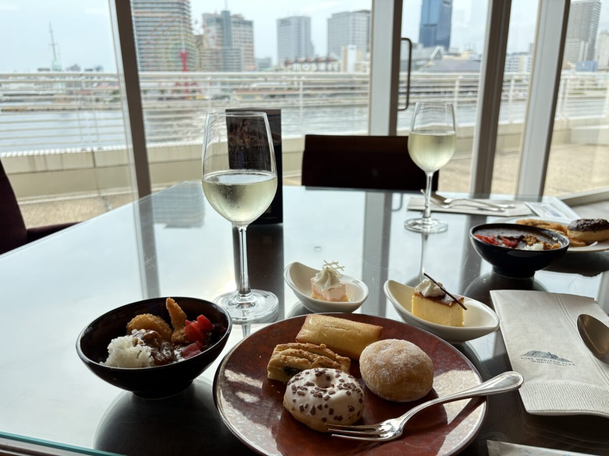 窓の向こうの海や観覧車を眺めながらのラウンジは、とっても優雅な時間でした。