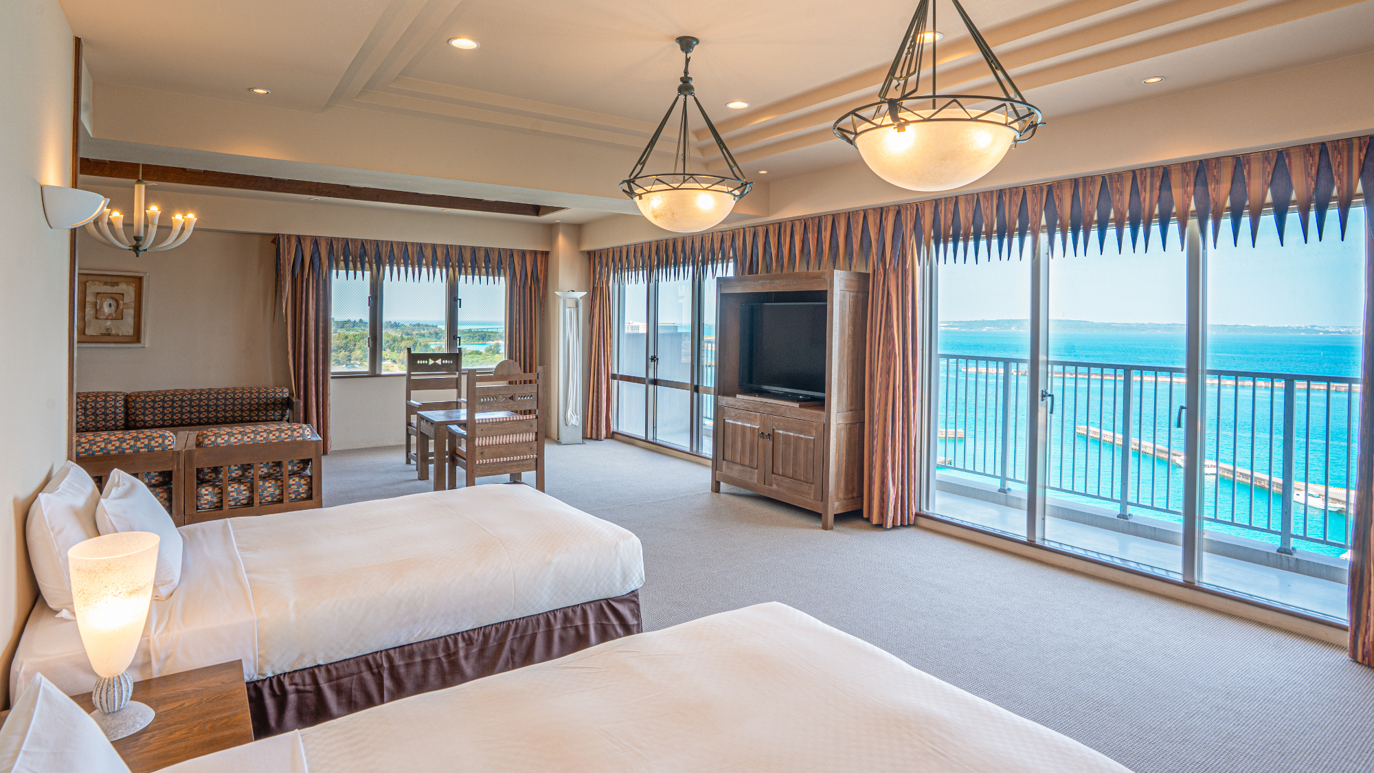 目の前に宮古島の青い海が広がる部屋で、のんびりとリゾート気分を味わえますよ。