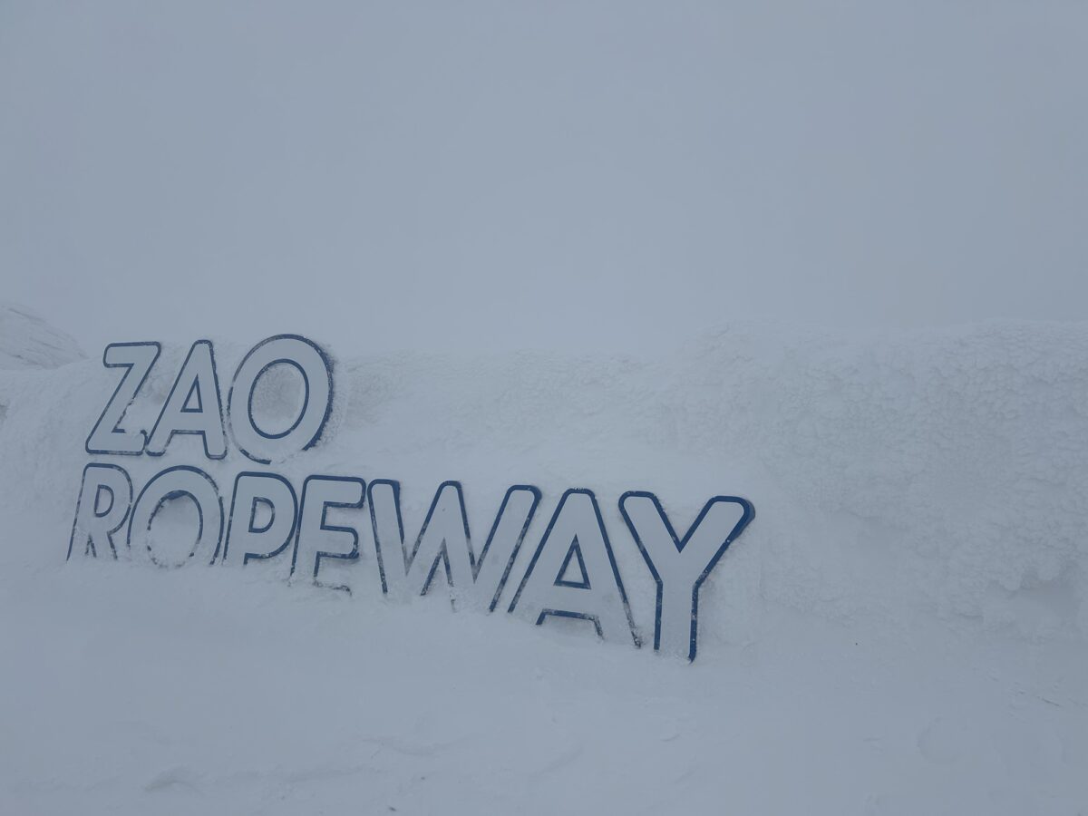 最後に「ZAO ROPEWAY」モニュメントの前で写真を撮り、帰りのロープウェイに乗りました。