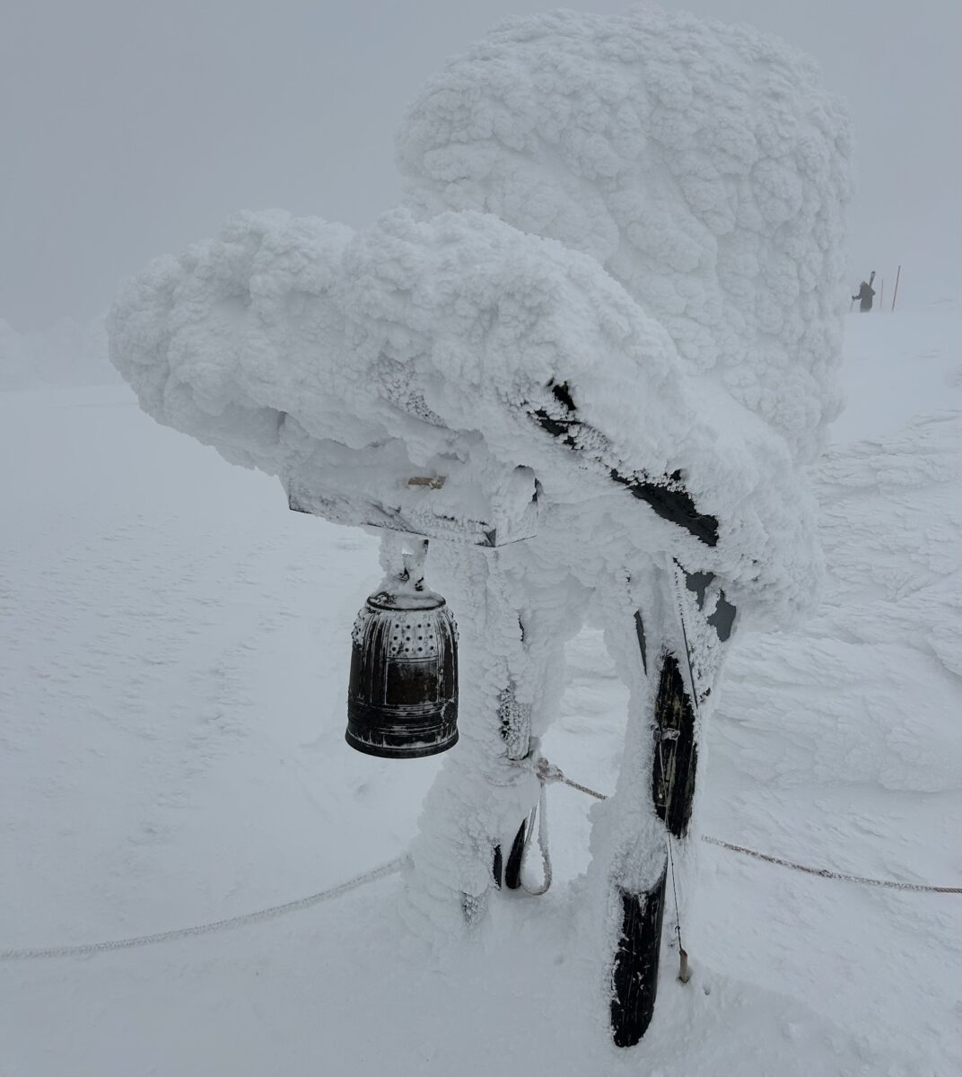 山頂にあるものはすべて氷で覆われていて、まるで異世界に来たような光景でした。